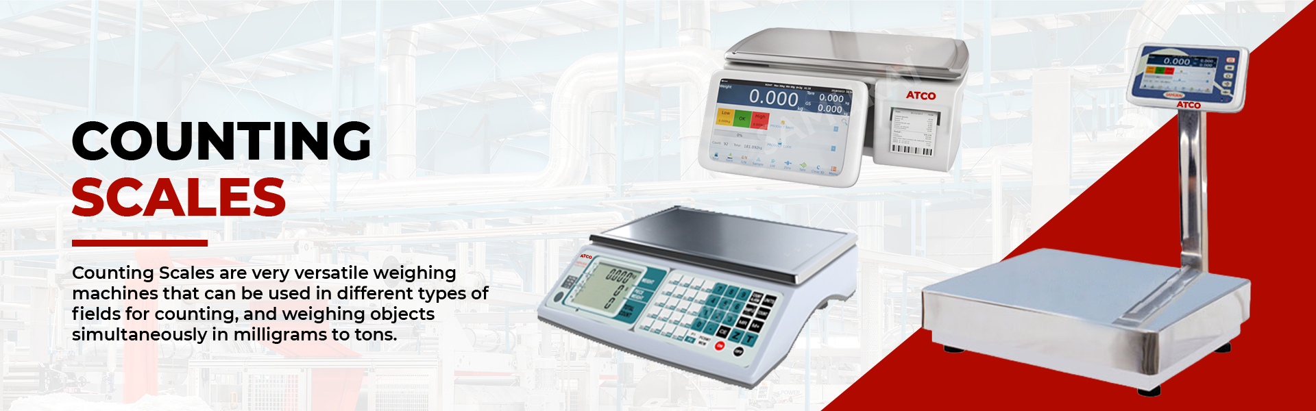 ATCO Complete Solution. Our name today understood by our customers as a name that spells quality and value. After year of Intensive research by a team of hardcore technocrats. ATCO Product Company has come up with a wide range of weighing machines to meet every possible weighing need of our customers. Manufactured under strict quality control standards. Right from the component selection stage to final assembly. ATCO electronic weighing scales undergo stringent tests to ensure that the scales surpass the standards set by the Weights & Measures Departments.Today ATCO Product Company has a complete range electronic weighing scales to weigh something as light as 0.01 mg.